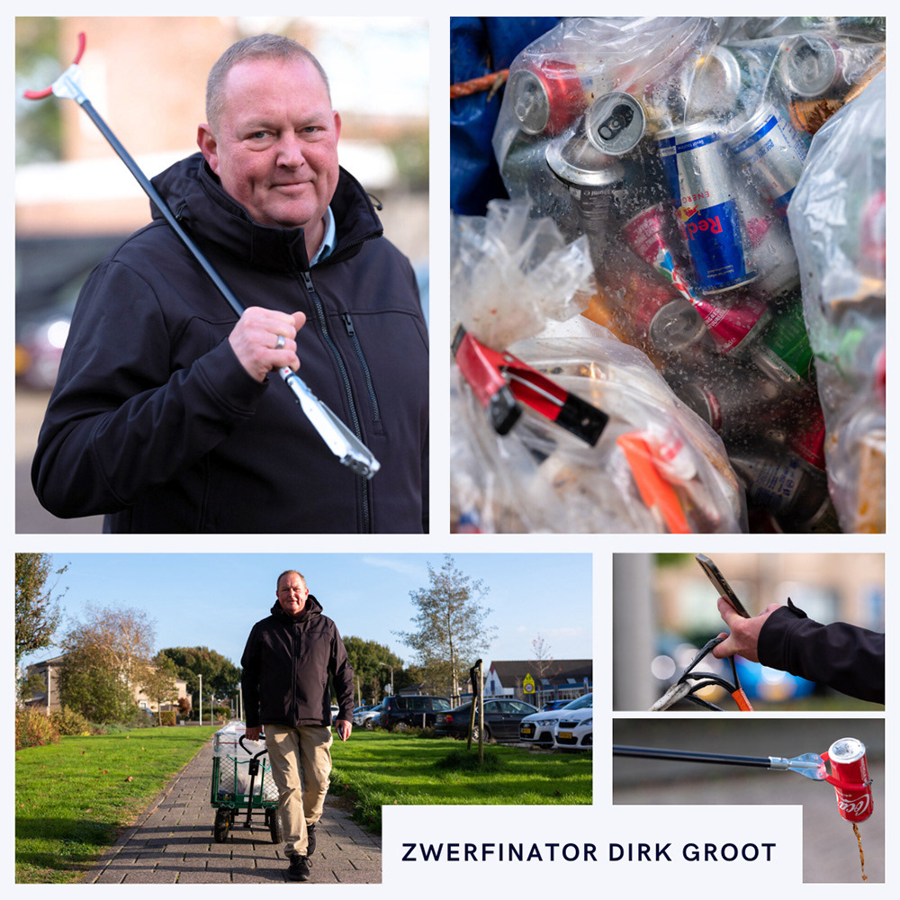 Zwerfinator Dirk Groot raapt zwerfaval op, fotografeert het, en zet het in een uitgebreide database, zodat er exact wordt bijgehouden wat er op straat wordt gegooid. In opdracht van diverse gemeenten onderzoekt hij momenteel de inhoud van prullenbakken.